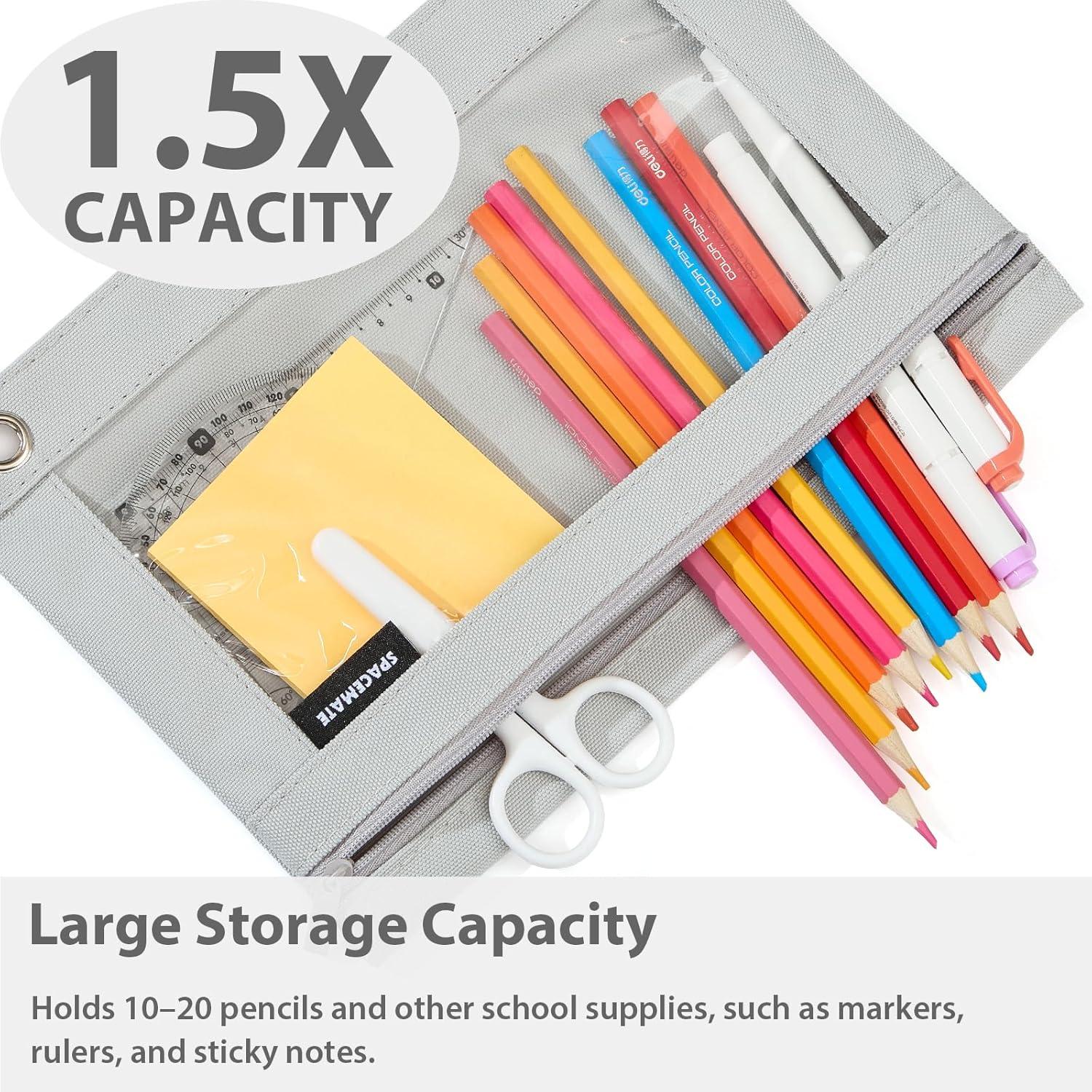 imageSPACEMATE 2 Pack Binder Pencil Pouch Case Box Bag for 3 Ring Binder School Supplies Girls Boys Kids Clear Preppy Stuff Large Aesthetic Pen Organizer Back to College Stationary Light PurpleGray
